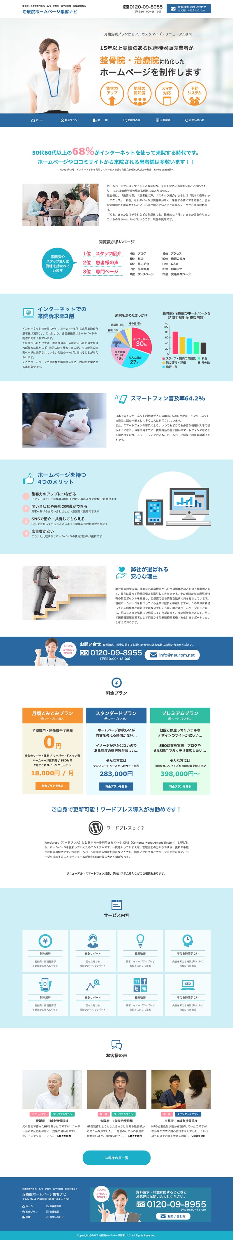 治療院ホームページ集客ナビのホームページ制作。下層ページを含め全6ページのデザインとコーディングを担当。