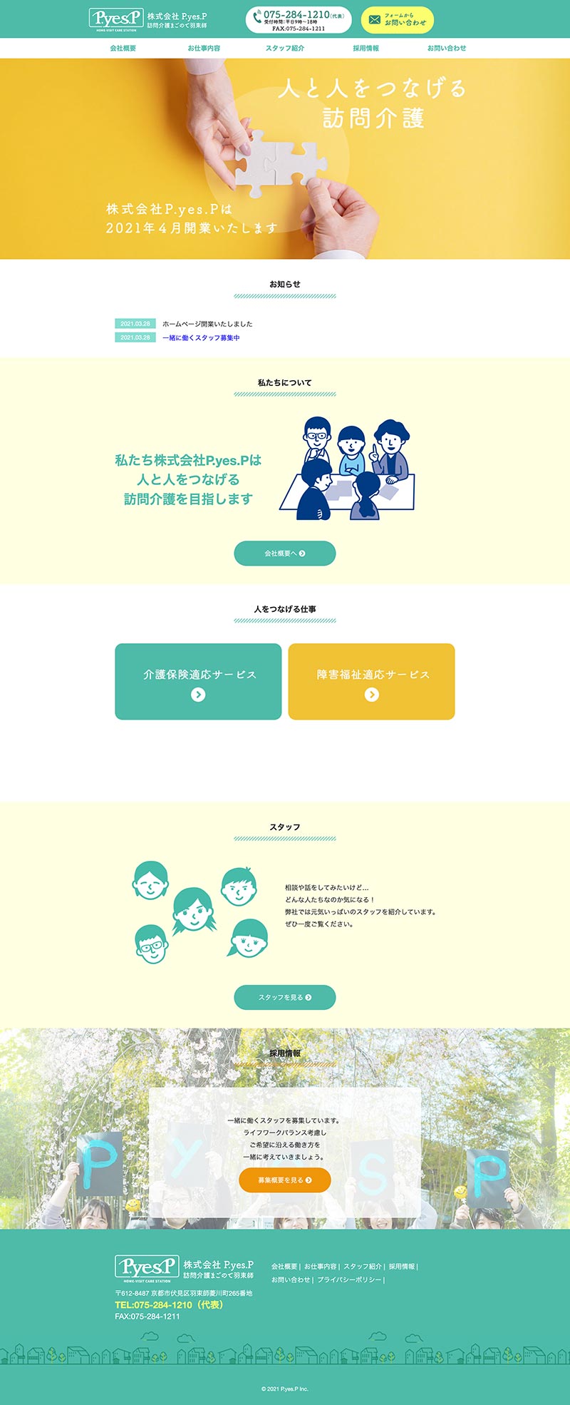 訪問介護施設のWebサイト制作。ヒアリングからコーディングまで担当。
